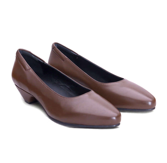 AGSU Brown Leather Pumps 1.25" Kitten Heel